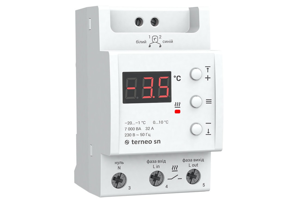 Терморегулятор призначений для роботи із системами антиобледеніння та сніготанення підвищеної потужності (до 7000 ВА). Забезпечує оптимальну роботу завдяки можливості налаштовувати діапазон температури, при якому можливе намерзання бурульок на крыші чи утворення ожеледиці на землі. Ви не витрачаєте даремно електроенергію, коли температура надворі надто низька або достатня для природного танення.