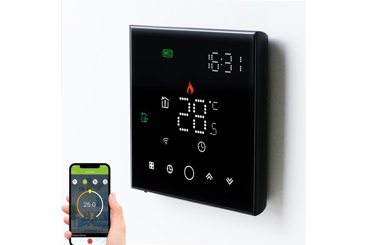 Програмований електронний WiFi терморегулятор призначений для управління включенням/вимиканням гріючого кабелю або інших нагрівальних електроприладів. Даний WiFi терморегулятор можна запрограмувати на тиждень вперед, а також віддалено керувати ним з будь-якої точки світу, де є інтернет. Ви, наприклад, можете виходячи з дому вранці, вимкнути обігрів і включити його за годину приїзду додому, використовуючи смартфон і спеціальний додаток. Терморегулятор має два датчики визначення температури - один вбудований в корпус і виносний датчик довжиною 3 метри, який монтується біля теплої підлоги. у різні проміжки часу доби і цим економити електроенергію. Наприклад, вночі +18°С для міцного сну, вранці +24°С для приємного пробудження, вдень знижену, коли Ви на роботі та нарешті ввечері +22°С для комфортного відпочинку.